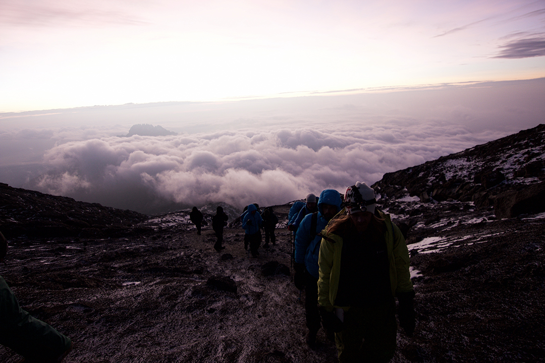 Ett halvår och nästintill en personlig konkurs senare (resa och omkostnader stod vi för själva så insamlade medel till 100% kunde gå till AktivisFonden), stod jag på sista etappen av berget som skulle besegras. Inställningen att målet skulle vara en förhållandevis lätt uppgift som kunde liknas vid en ”utmanande promenad” hade förändrats. Efter gårdagens ankomst till sista lägret på 4600m innan toppen, hade jag kräkts för första gången. Jag visste nu att jag hade blivit höghöjdssjuk. Med huvudvärk, illamående, smärta och ett förvirrat tillstånd gick jag nu i totalt mörker upp för en brant bergsvägg utan möjlighet att se längre än teamets pannlampor lyste. Hur kunde varje steg vara så jobbigt? Jag försökte spara energi genom att knappt lyfta fötterna vid varje steg. Jag kommer ihåg hur mina iskalla tår hade kontakt med marken i de korta stegen och mitt fokus var att sätta ena foten framför den andra. Jag försökte skingra tankarna på att vi från vår start vid midnatt skulle gå i sju till åtta timmar i detta tillstånd. Hade jag vetat att det skulle bli värre ju närmre målet vi kom hade jag nog lagt mig ner på rygg.