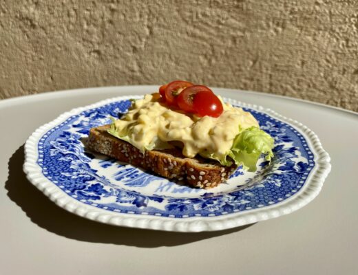 Kolhydrater per portion: 1,5 gramFiber per portion: 0 gram Det här är en ny favorit på frukostbordet hos mig! En krämig, god och mättande äggsallad – fullpackad med protein från ägg…